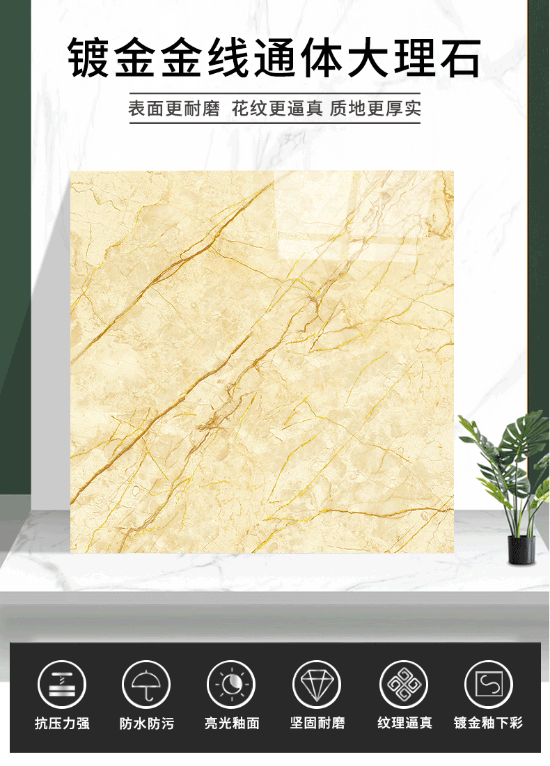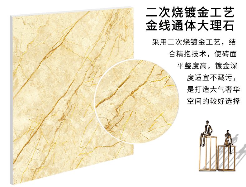 金線金粉 【產品介紹】航天級激光鍍金工藝,鉆石雕刻技術,高溫慢燒,釉層不吸污吸水率低,真空鍍金燒成后再進行真空電鍍工藝,平整如鏡面,精拋細磨,磚面平整光滑細膩光澤度、亮度、硬度較高。立體紋理,釉下彩工藝,三次淋釉增加磚面的立體感。