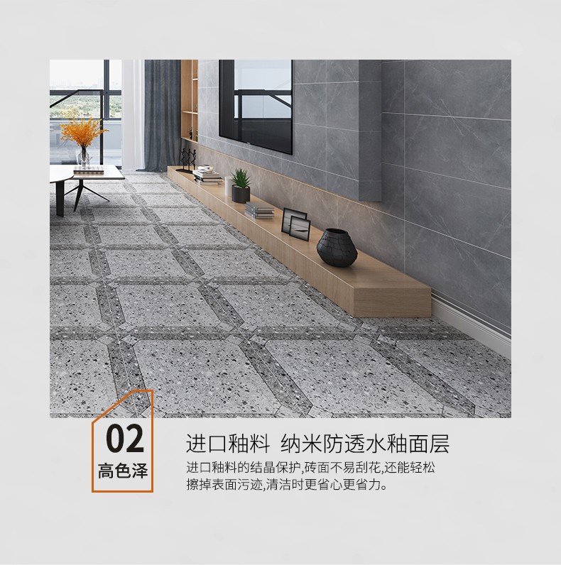 金曼古仿古地磚,采用國際先進的超大型壓機自動成型,經世界一流的滾筒印花和高溫煅燒而成,通過仿石、仿巖、仿木、仿布、仿金屬等多種表現方式,產品花色圖案新穎時尚,領先國際潮流,具有超耐磨、防滑、防污等高性能指標。