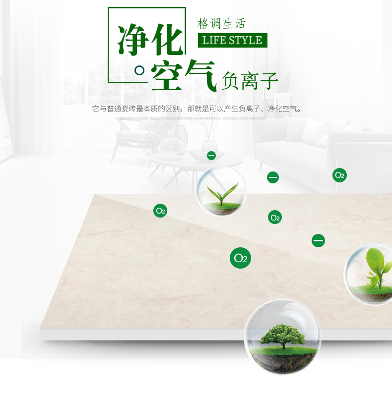 金曼古負離子瓷磚,能持續產生負離子,提高居室內空氣負離子濃度,改善室內空氣質量,提升人體健康水平。負離子被稱為空氣維生素,負離子瓷磚創造安全健康的空間環境。工程用磚全拋釉地磚、通體大理石瓷磚、金剛石地磚等支持加工定做家裝瓷磚批發。