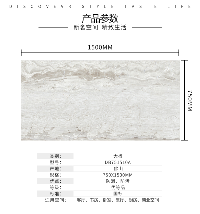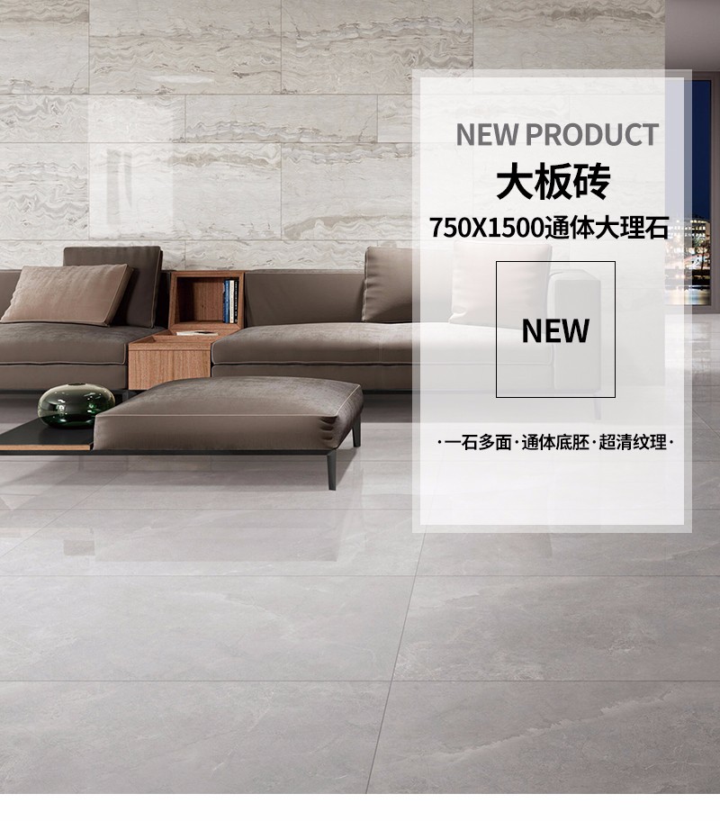 大規格瓷磚(DB751510A)-工程瓷磚 金曼古大規格瓷磚引進世界最先進的超大型壓機自動壓制而成,具有超大規格,超高硬度,超高致密度,超長時間煅燒,超低吸水率,超高光澤度。其磚面紋理流暢自然,效果逼真,適用于大型工程外墻干掛和酒店、商場、各辦公樓大堂等地面裝修